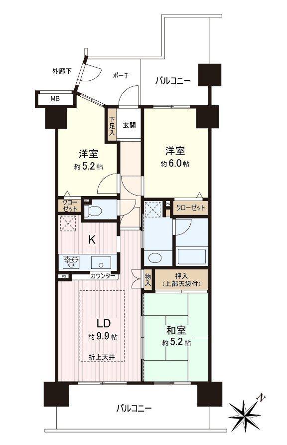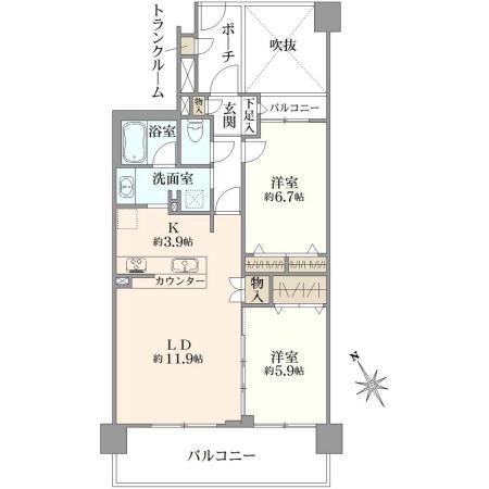 2LDK | 5180万円 | 63.74平米(19.28坪)(壁芯) | 南西 | 相談 | お問い合わせする(無料) SUUMOで詳細を見る |