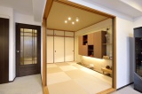 マンションの6畳の和室を4畳半にサイズダウンし、その分、収納を増やして使い勝手をよくしました。和室の内装は、伝統的な手法を活かしながらもモダンに仕上げています。